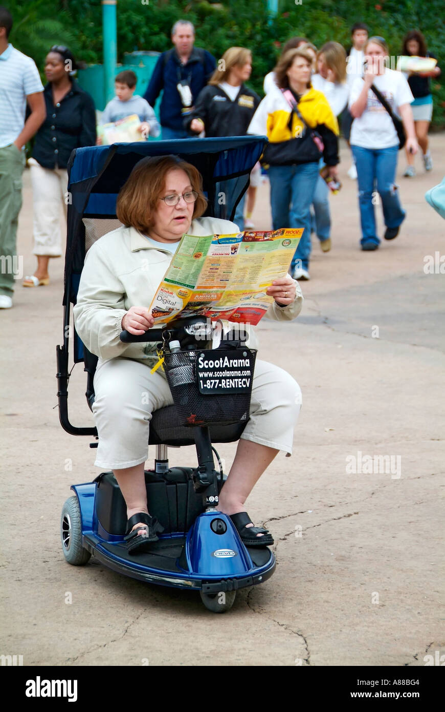 Handicapped female woman reads map for directions at The Animal